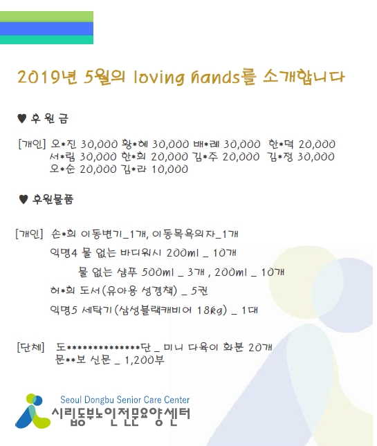 2019년 5월 loving hands!!를 소개합니다. 페이지 정보 작성자 최고관리자 작성일2019-06-11 16:55 조회14,432회 댓글0건 관련링크 이전글 다음글 목록 본문 여름이 찾아 오는 5월에도 많은 관심과 사랑의 손길을 베풀어 주셔서 감사합니다.6월에도 많은 관심과 사랑을 부탁 드립니다. 댓글목록 등록된 댓글이 없습니다. 이전글 다음글 목록